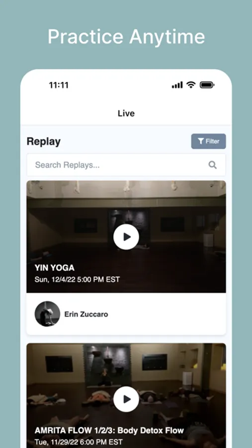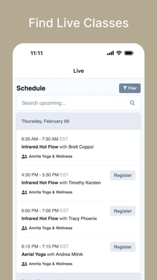 The Amrita Yoga & Wellness app lets you register for upcoming classes and watch replays from Amrita Yoga & Wellness