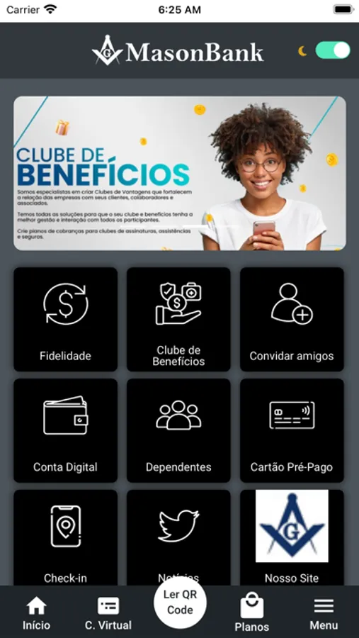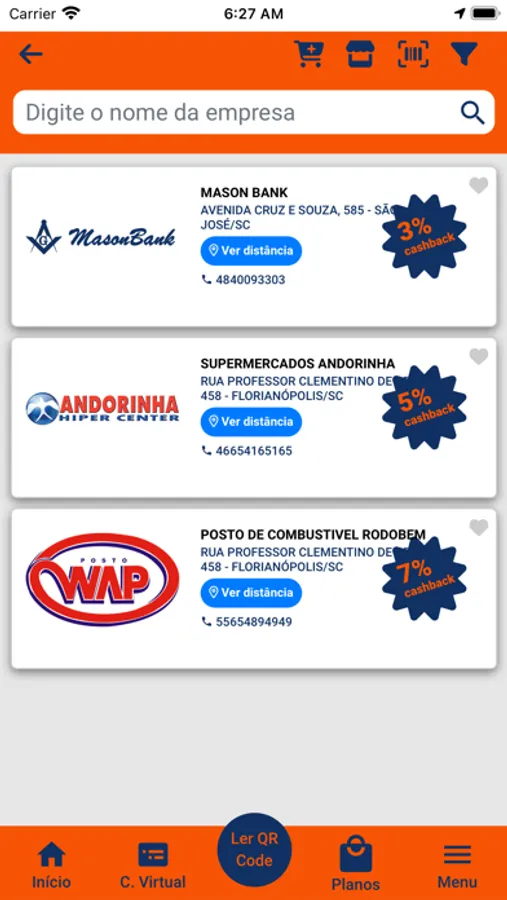 - Visualização da geolocalização e benefícios oferecidos pelas empresas do clube de benefícios;