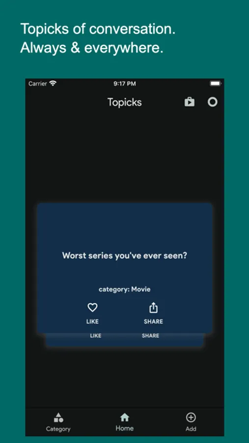 The app already contains over 900 different interesting topics of conversation from over 10 categories. Of course, more topics and categories will be added continuously in upcoming updates!