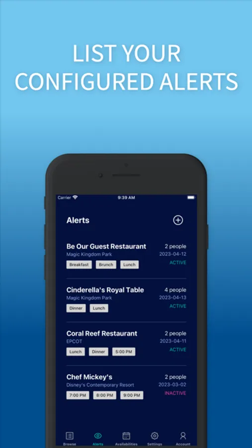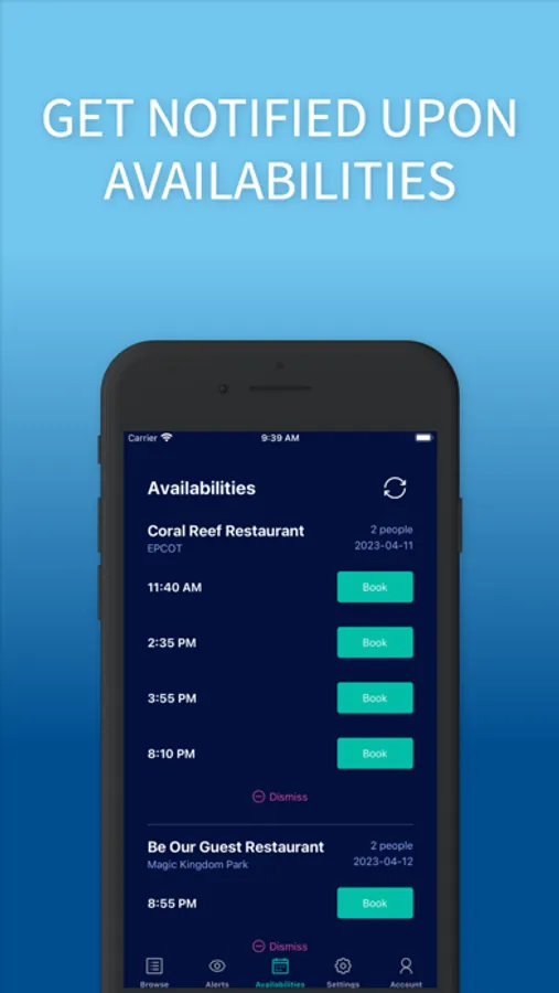 MyDiningBuddy is designed for Disney World enthusiasts who are looking to secure dining reservations at their favorite restaurants but struggle to find availability. With our app, you'll never miss a chance to dine at your favorite Walt Disney World restaurants again. The app provides real-time alerts when dining reservations become available, so you can quickly and easily make your reservations.