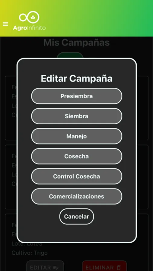 Guarda la trazabilidad de cada etapa de la campaña, desde las labores de presiembra hasta cosecha, logística, comercialización y control de stock. Genera reportes, estadísticas, calcula el margen bruto pre y post campaña y gestiona tu agenda de contactos.