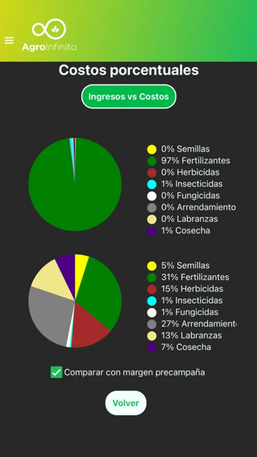 Organización inteligente del ciclo agrícola. Cálculo de márgenes brutos pre y post campaña. Reporte cronológico del manejo de los lotes. Gráficos y estadísticas zonales, entre otros.