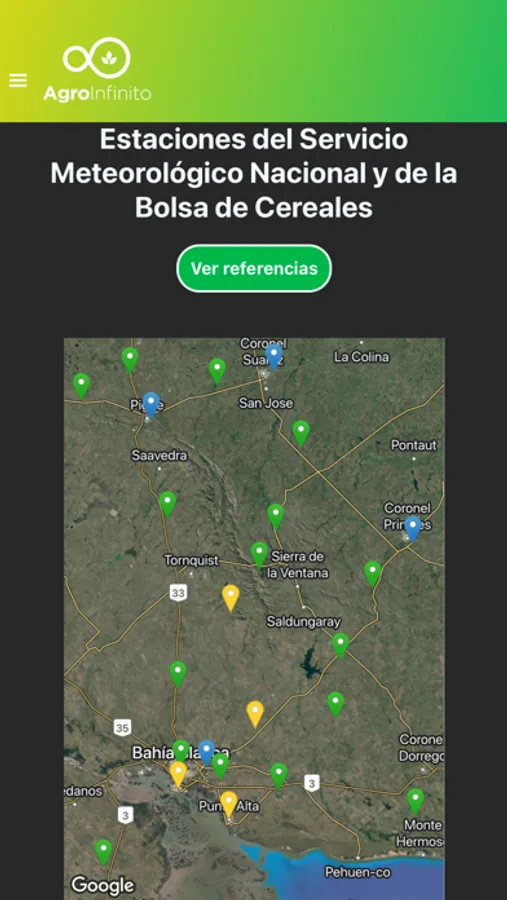 Pronósticos del tiempo a nivel regional. Carga y registros de precipitaciones con los históricos online. Mapas con la dirección y velocidad del viento, probabilidades de granizos y soplete, disponibilidad hídrica de los suelos. Índices de riesgo de incendios.