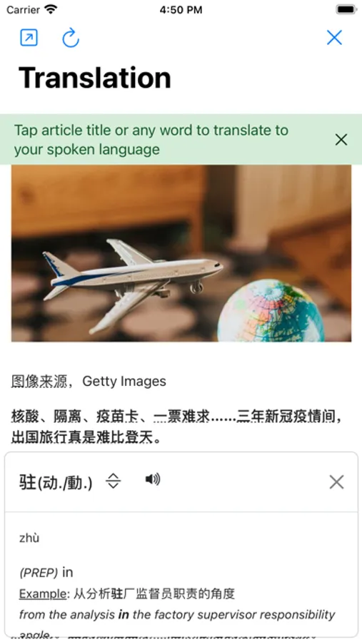 - Tap on any word in the formatted page to translate new vocabulary with embedded dictionary