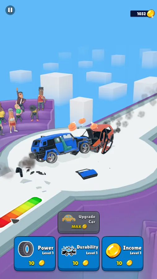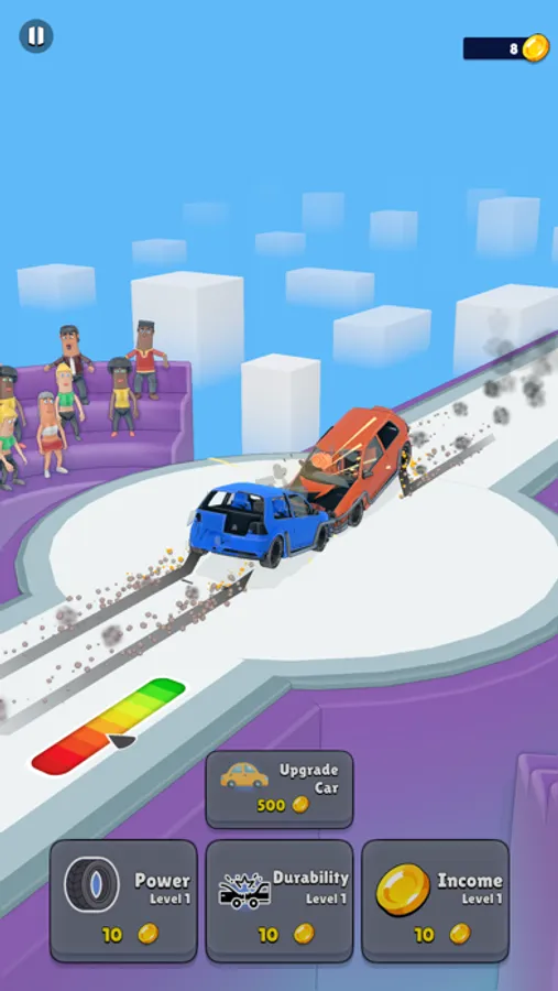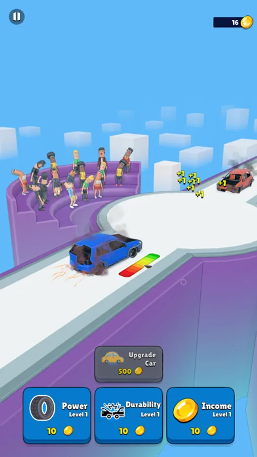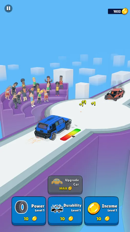 Quickly click the screen a few times, get the progress bar to the green dot, push the opponent car and win the game!