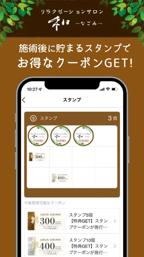 ご来店スタンプをためるとお得なクーポンが発行されます(ご利用条件がある場合がございます)