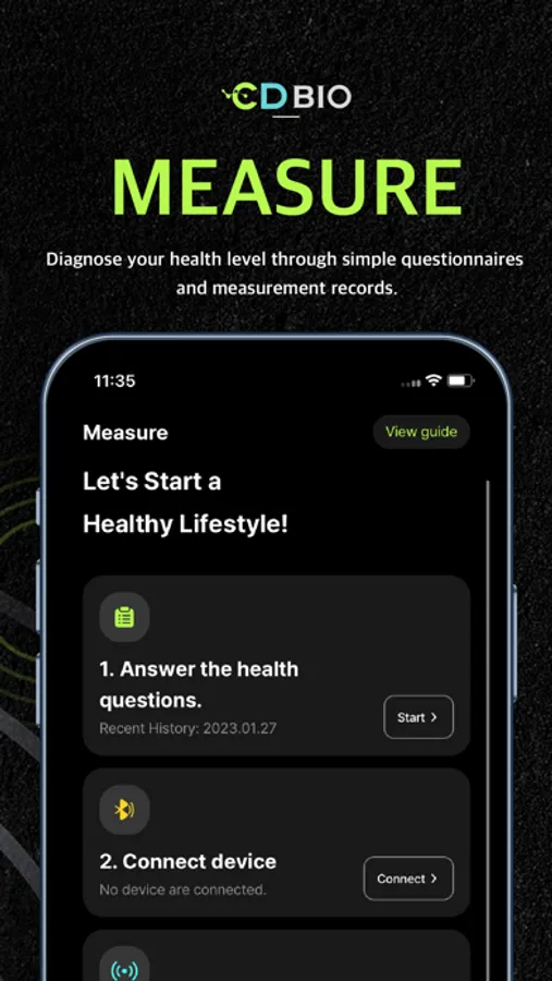 - Get your health diagnosed through simple questionnaires and measurement records.