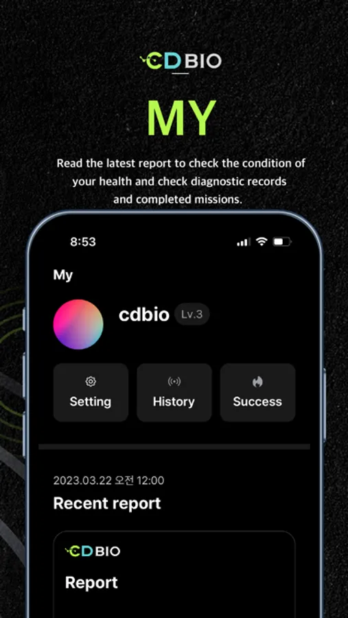 - Check your health status with the latest report, check your diagnostic history and success mission history
