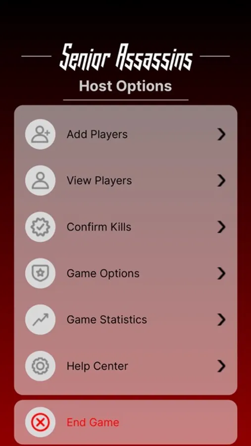Create a senior assassin's game and play it all with a click of a button! The host can create a game, add players, and randomly assign targets, and much more. The players can see who their target is, their live location, the round's end date, and the current leaders of the game.