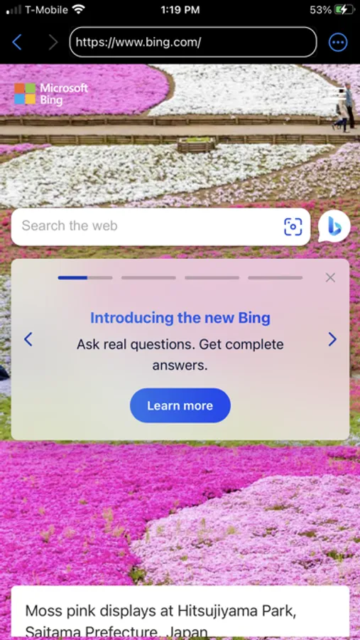 Search from the address bar or via speech to text