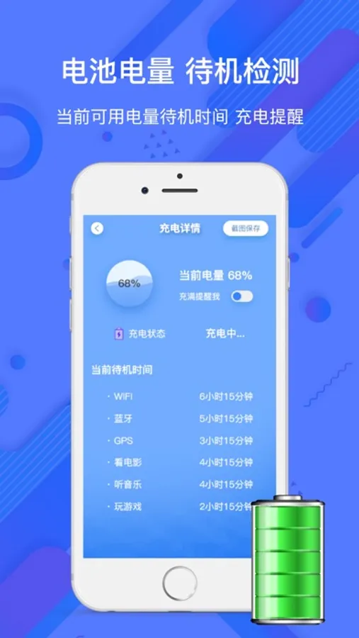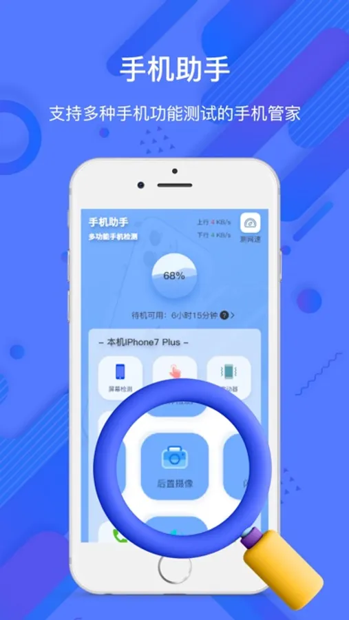 手机助手功能强大,还支持网速测试;支持待机评估,电池电量分析和充电提醒。