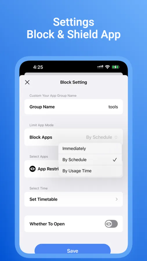 -Shield mode: It can add an application lock to your app to protect your privacy while improving your focus and improving your sleep quality. Set when your child plays games for real control.