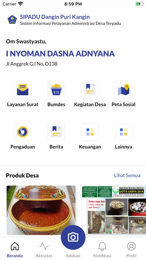 Application for Submission of Letters and Profiles for Dangin Puri Kangin Village, North Denpasar, Denpasar City