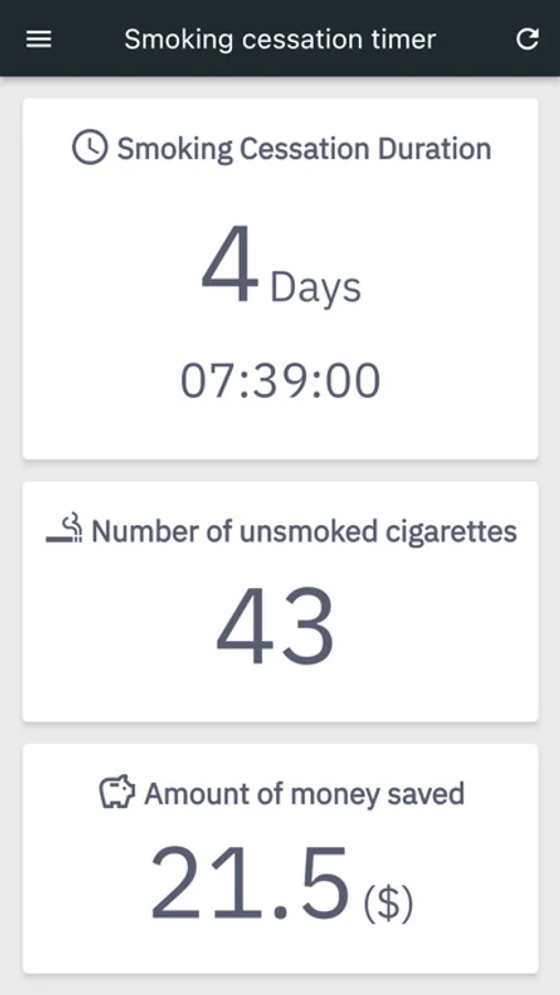 An app that shows you at a glance how long you have been able to quit smoking.