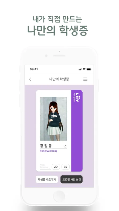 · KB국민은행 제휴 대학 학생일 경우, 움직이는 이미지를 통해 개성있는 나만의 학생증을 만들 수 있습니다.