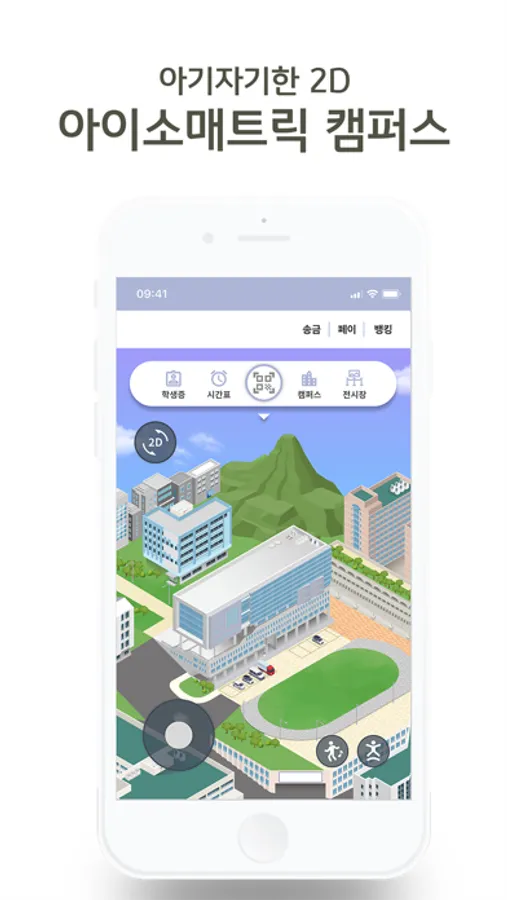 · 실제 학교를 본따 만든 2D 캠퍼스 맵을 통해 직접 방문하지 않고도 학교 위치를 알 수 있습니다.