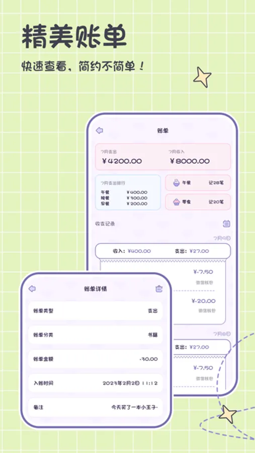 【精美账单】收入支出一目了然,再也不用担心把钱花在哪里;