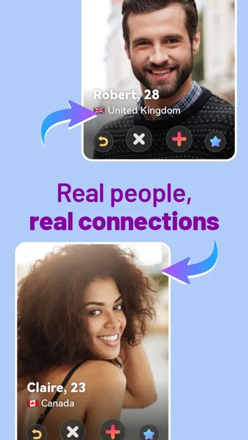 Swipe through a ton of profiles from all around the world to meet new friends! Swipe right on those that vibe with you and start chatting right away!