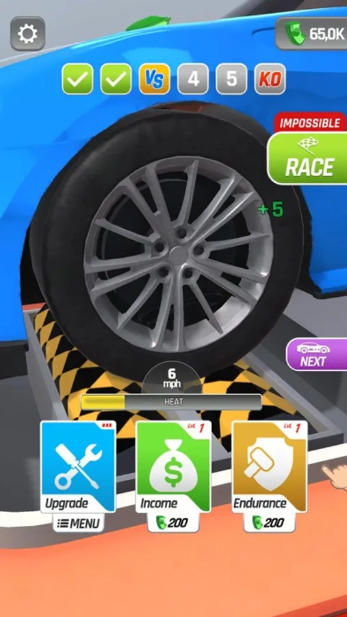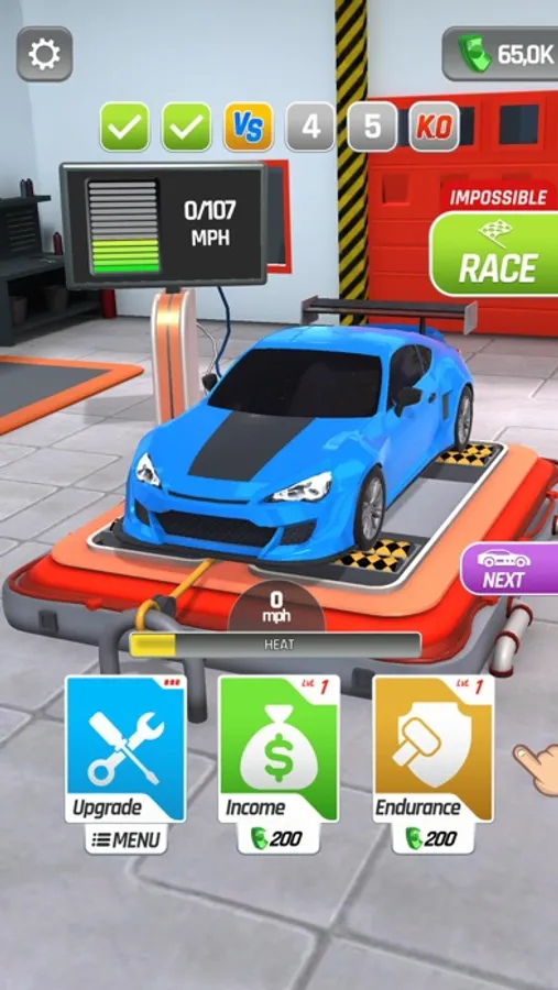 Tap and hold to rev up your engine and generate income, but be careful! Your engine might overheat if you push it too hard. Release the throttle to cool it down and keep it running smoothly. Use the income you generate to upgrade your car and unlock new vehicles.