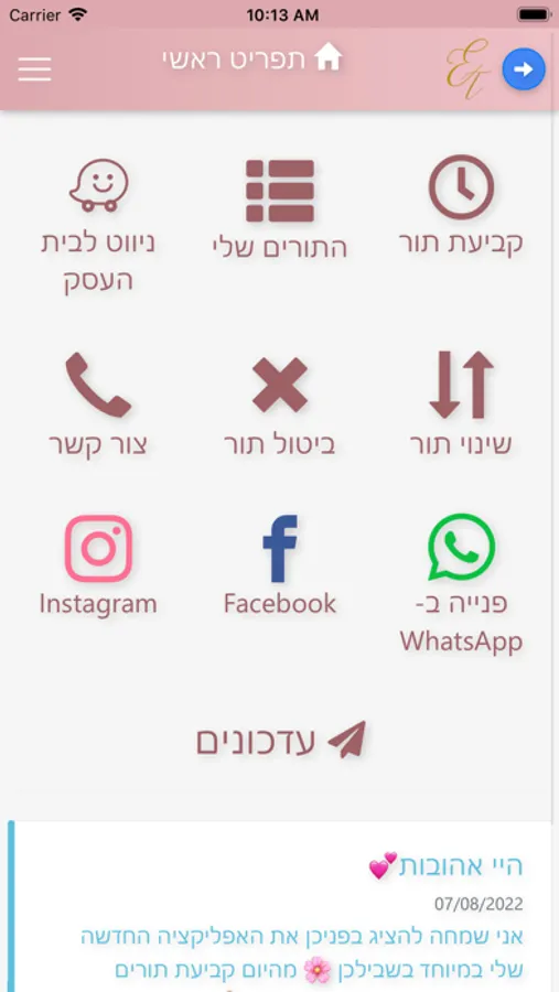 באפליקציה אפשר לקבוע תור, לנווט באמצעות Waze ולפנות אליי באמצעות WhatsApp.
