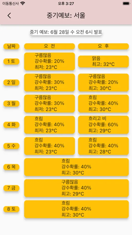 3일 후부터 10일 후까지 날씨정보를 알려 주는 중기 예보 등이 있습니다.