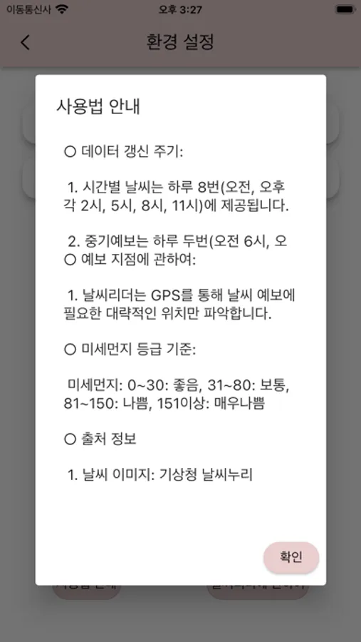 접근 권한 안내: 날씨 예보 지점을 결정하기 위해 사용자의 대략적인 위치정보가 필요합니다.