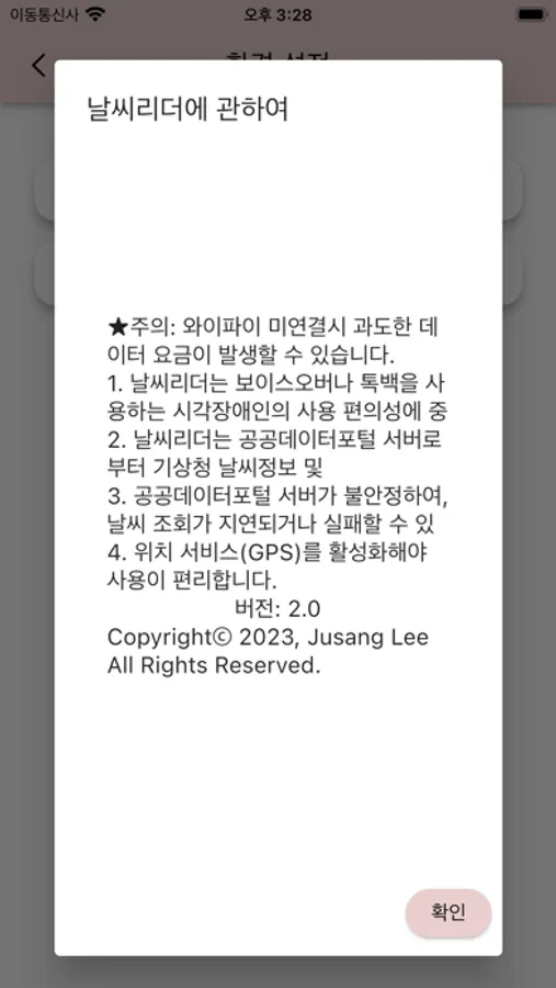 참고로 날씨 정보를 받아 오는 공공데이터포털 서버 상태가 좋지 않을 경우에는 날씨 정보 표시가 지연되거나 실패할 수 있습니다.