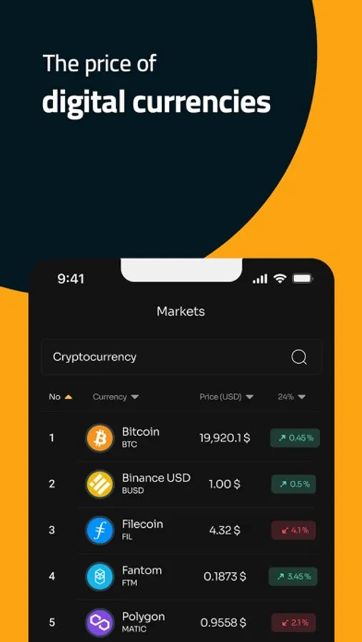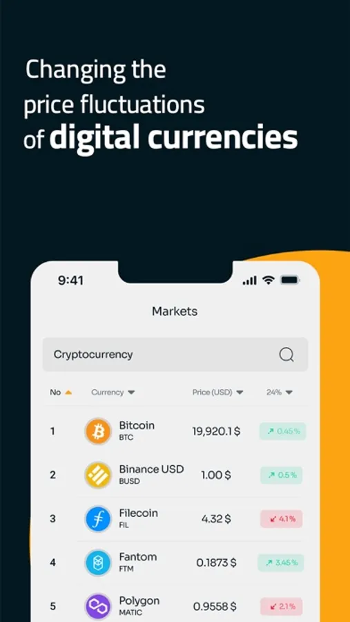 The app is a cryptocurrency price tracker that provides up-to-date information on various cryptocurrencies, including their current market price and other relevant details such as market capitalization, trading volume, and circulating supply. The app can be customized to display prices in different fiat currencies and has a search function for users to easily find specific cryptocurrencies.