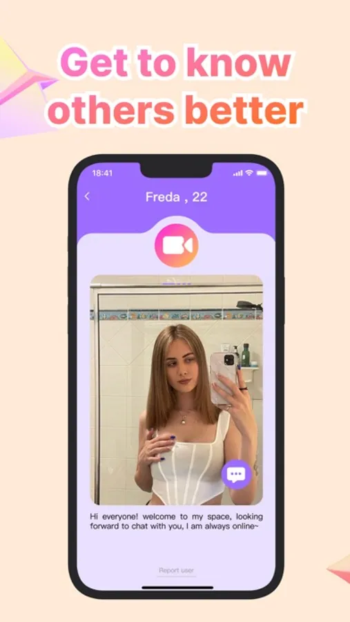 pick up like-minded people, chat with TA video/text anytime, anywhere, and build a social circle just for you.
