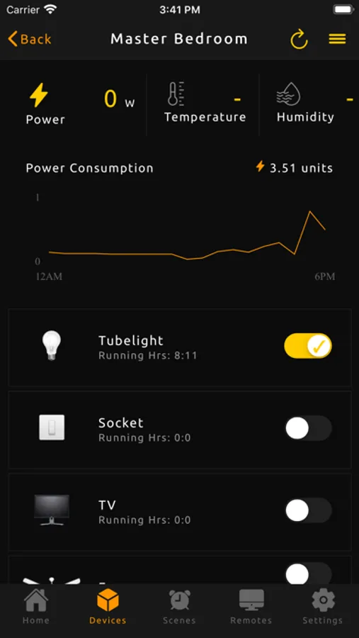 7. View real-time power consumption and energy stats of the appliances.