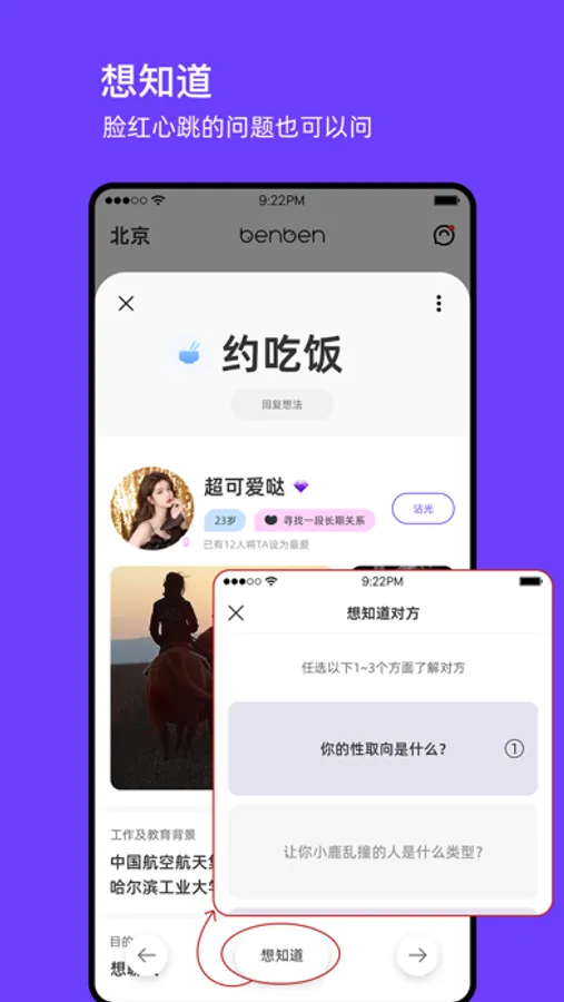 【想知道】通过好玩的“想知道”功能,你可以向TA发出有趣的问题,从而找到同频的人和有趣的话题。
