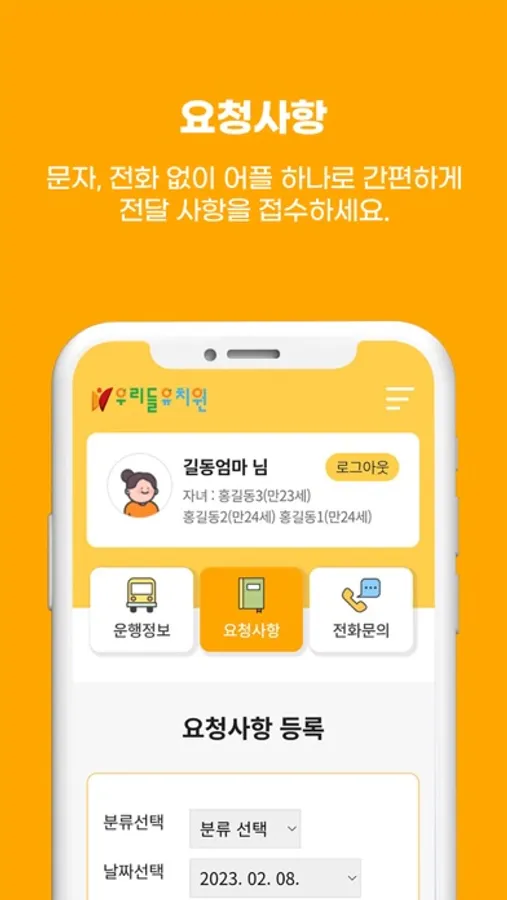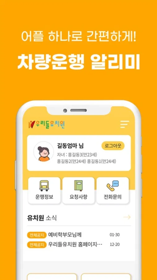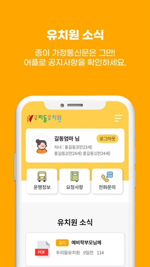 우리들유치원 학부모 알리미 어플입니다.