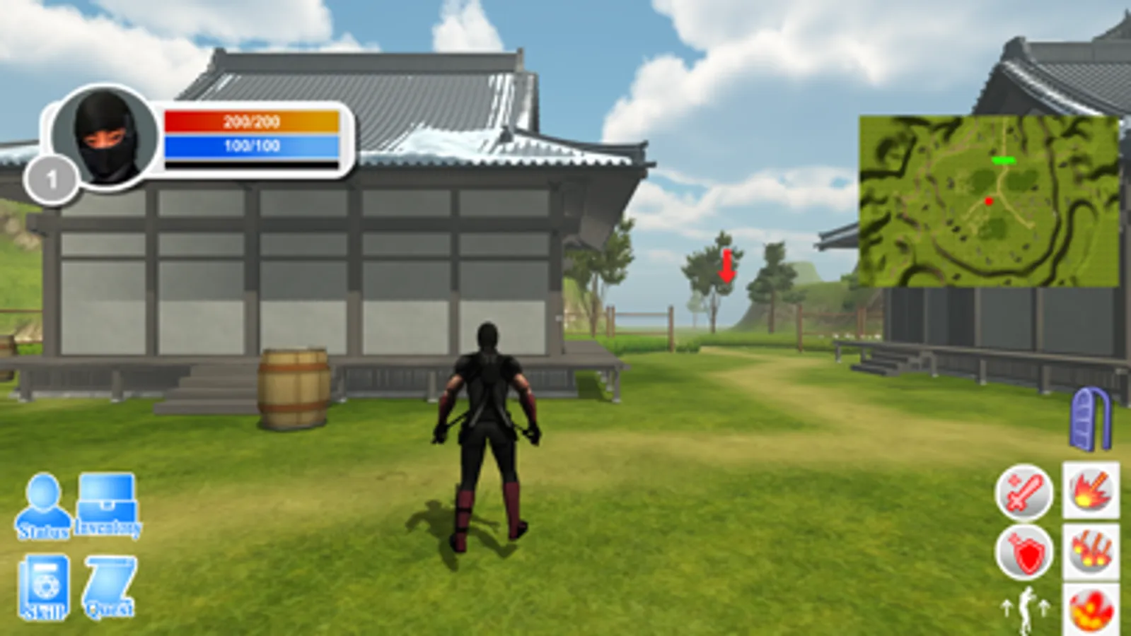 In this role playing game, Japanese warriors (Samurai or Ninja) fight in zombie crowded plain or giant spider swarmed cavern against various monsters by using different weapons.