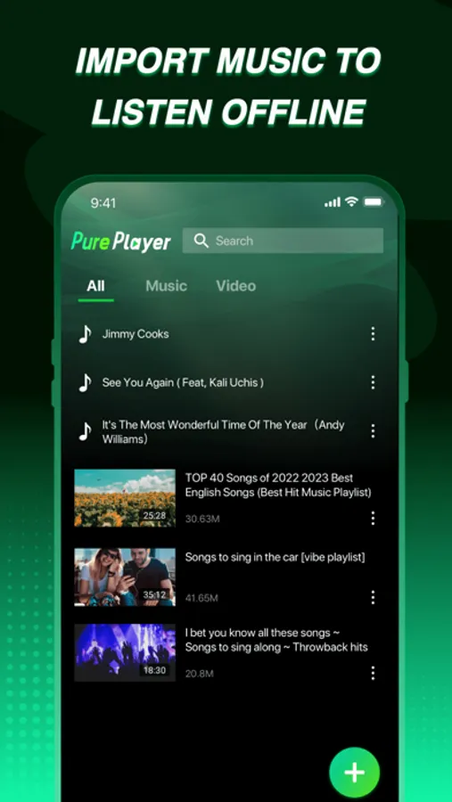 With Pure Player, everyone can enjoy music anywhere anytime! You can import music files your friends share, concert videos, lecture recordings, or whatever you want. Then enjoy the media playback without internet.