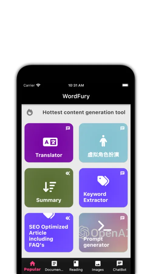 WordFury is a comprehensive document generation tool based on AI technology that can help you quickly generate various types of professional documents. Compared to traditional document generation tools, WordFury is faster and more straightforward, allowing you to save time and energy and focus on more important things. From copywriting and creative content to email automation and company operations, it can meet all your needs.