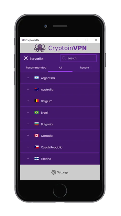 This CryptoinVPN app makes it possible to connect to VPN servers.