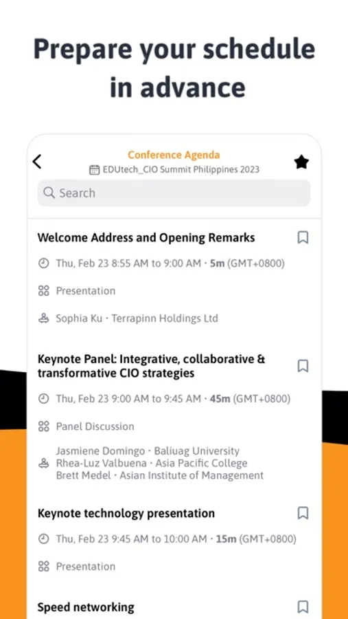 You can browse the agendas, floor plans, exhibitor lists, attendee lists and book in meetings from the minute the app goes live.