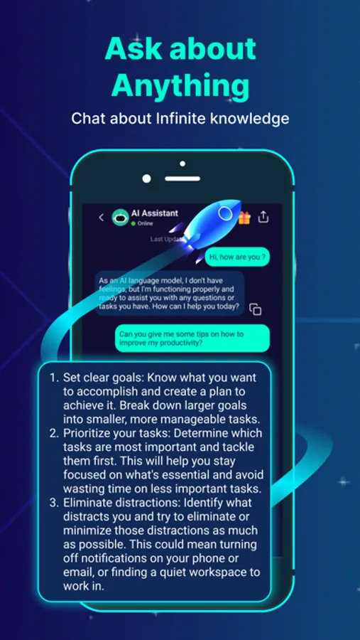 Ask AI: AI Chatbot Assistant is able to understand and engage with you on a wide range of topics, from current events to personal thoughts and feelings.