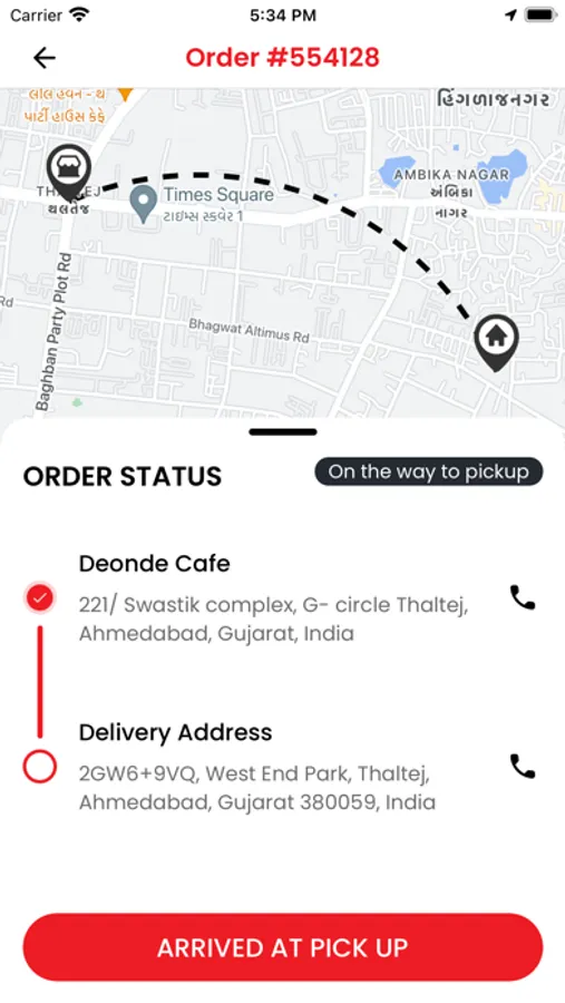 - Restaurant Pickup location on Map System