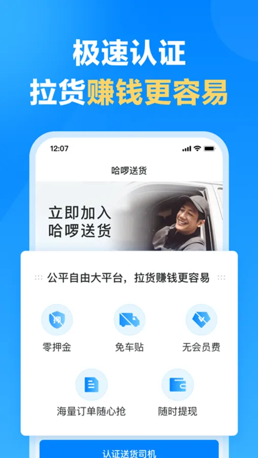 1、注册司机免会员费、免车贴、免押金,开城首月零抽佣,对比同类型送货平台更自由、无压力