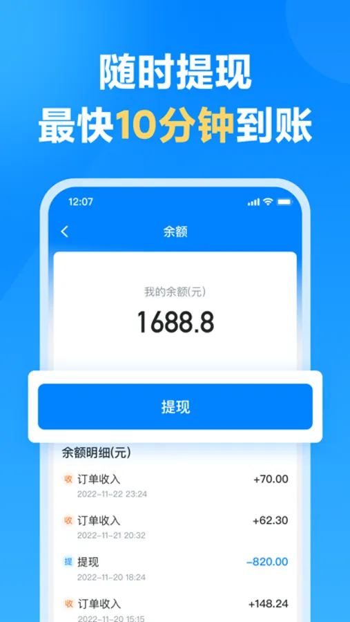 4、注册后可得新人大礼包、订单准时奖,接单奖励多多,轻松赚钱