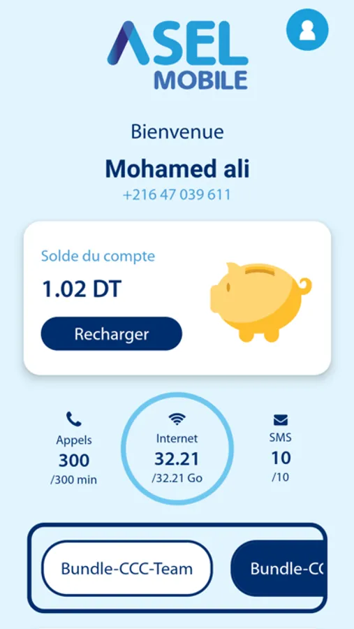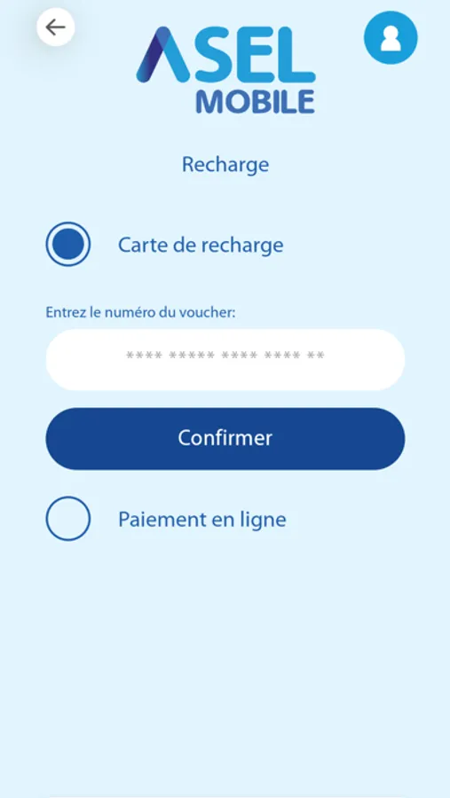 - Chargez votre carte SIM directement via l'application.