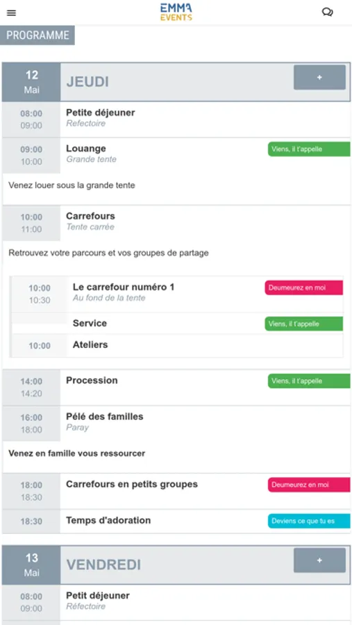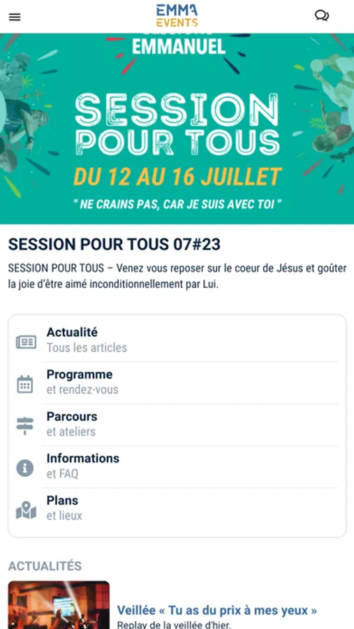 Retrouvez toutes les informations des évènements de la Communauté de l'Emmanuel. Vous accèderez aux programmes, aux actualités et toutes les informations nécessaires pour vivre votre session.