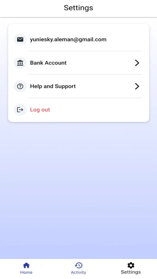 An email is needed to register as a user. After collecting the balance, the app will ask users for the routing number and account number from their bank in order to get the balance transferred.
