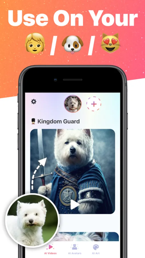 AI Video allows you to create videos of yourself, your family, pets, and friends using your photos, and AI Art from text prompts.