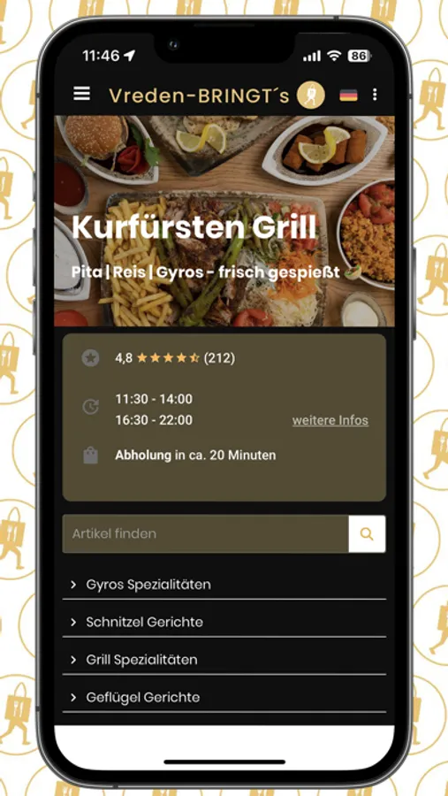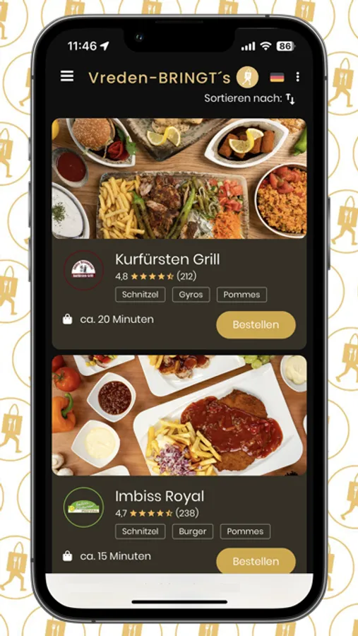 Mit Vreden BRINGTs hast Du all Deine Lieblingsgastros immer in Deiner Hosentasche! Neben der Übersichtlichen Darstellung bietet die App natürlich auch besondere Features. So kannst Du spielend leicht die Betriebe nach den besten Bewertungen, nach Namen oder der schnellsten Abhol- oder Lieferzeit sortieren. Natürlich kannst Du nicht nur im Sortiment der Gastronomen stöbern sondern auch direkt bestellen und bezahlen mit den gängigen Zahlungsmethoden!