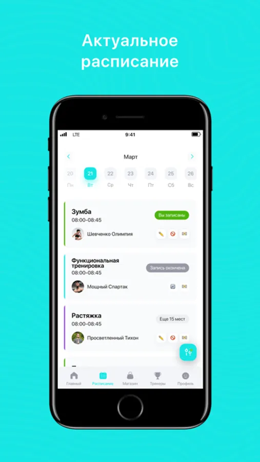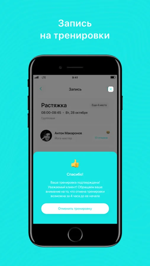 - Получать PUSH-уведомления о предстоящей тренировке за 3 часа;