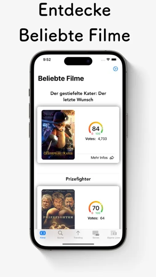 Mit Watcher kannst du mühelos Listen erstellen, um deine Lieblingsfilme und -serien zu organisieren. Plane dein nächstes Film- oder Serienabenteuer und behalte den Überblick über das, was du noch sehen möchtest.