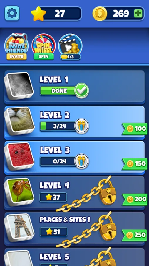 - In-game currency - use coins to purchase hints, lives or unlock special levels.