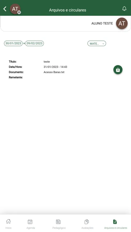 • Consulta dos arquivos e circulares para os alunos baixarem. permitindo consultar no momento que desejar.